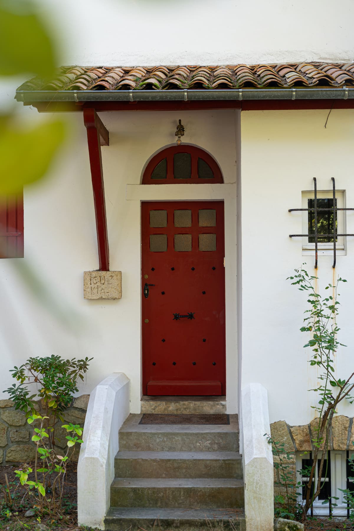 La maison se trouve sur un terrain en partie non clôturé et en surplomb par rapport à la rue