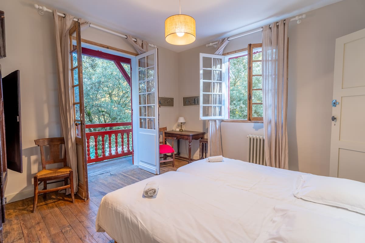 La maison dispose de 8 chambres : 4 au rez-de-chaussée et 4 à l'étage, ainsi que de 4 salles de bain attenantes aux chambres