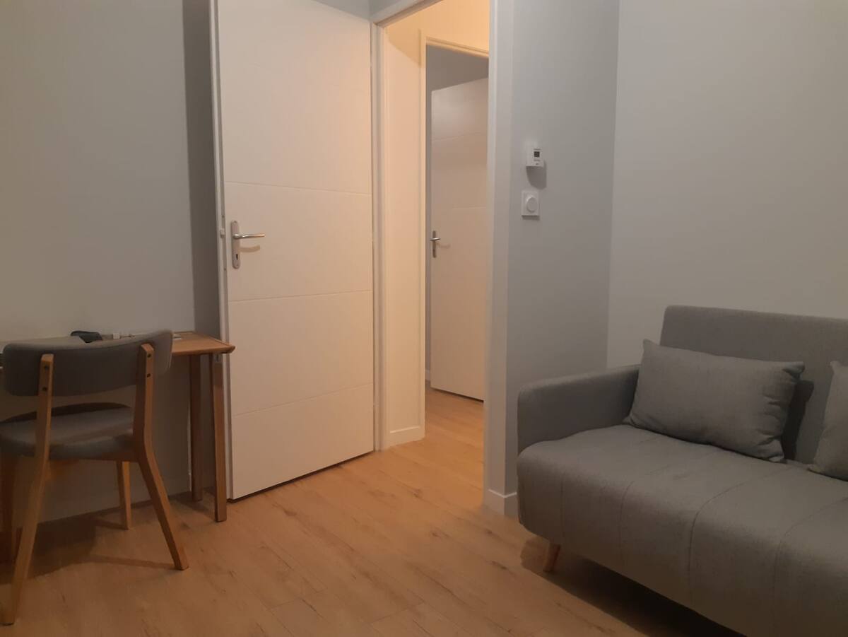 1 chambre avec 1 canapé lit gigogne 140cm, 1 bureau, 1 chaise de bureau, 1 tabouret, 2 meubles bas de rangement, 1 imprimante.