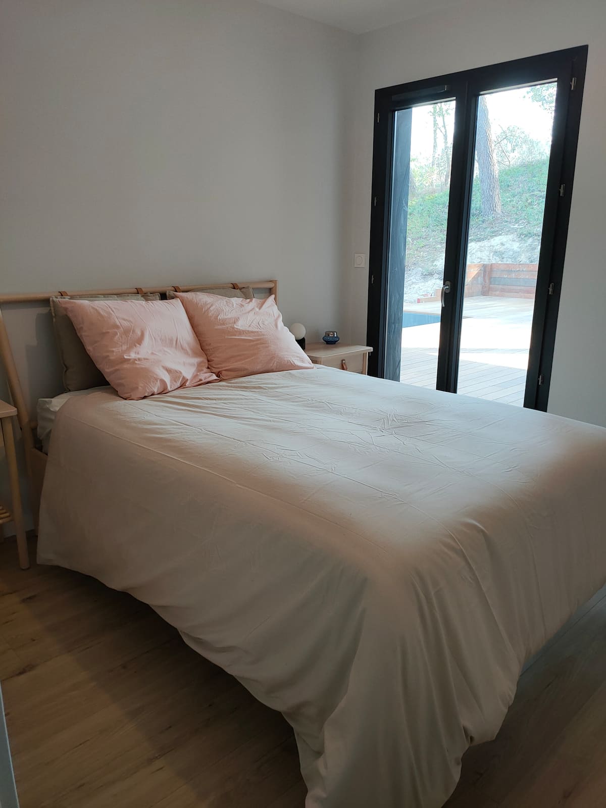 Les 2 chambres au rdc ont chacune un couchage 2 personnes avec lit 140.