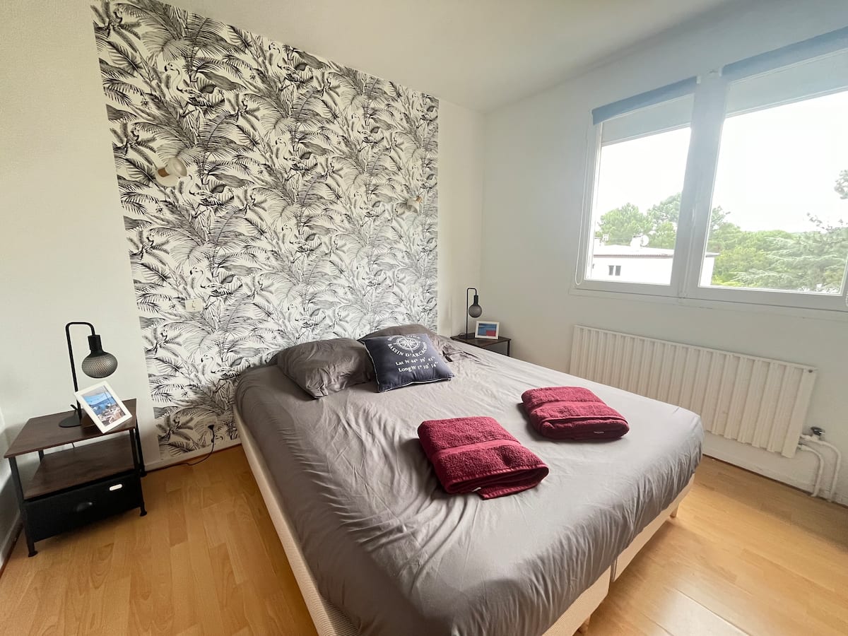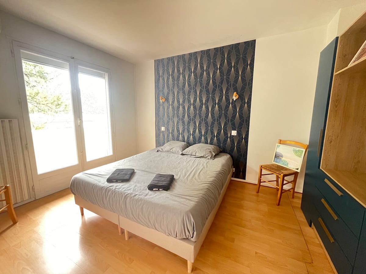 1er étage : 2 belles chambres climatisées, réalisées en 2024, avec chacune une salle de bain et un bureau.
