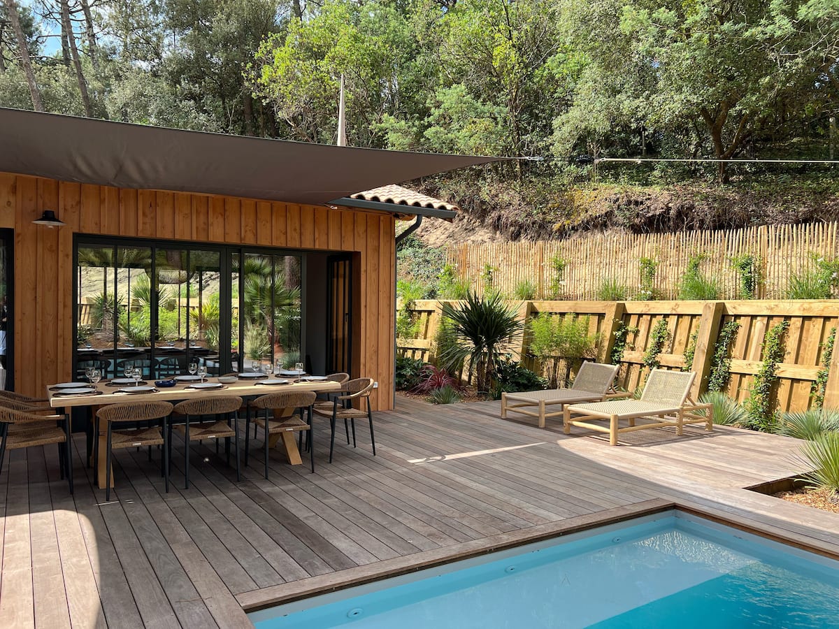 L'extérieur, tout aussi agréable que l'intérieur, dispose d'une grande terrasse, idéale pour les déjeuners au soleil, une piscine équipée d'une alarme, d'une bâche à barre et d'un boulodrome.