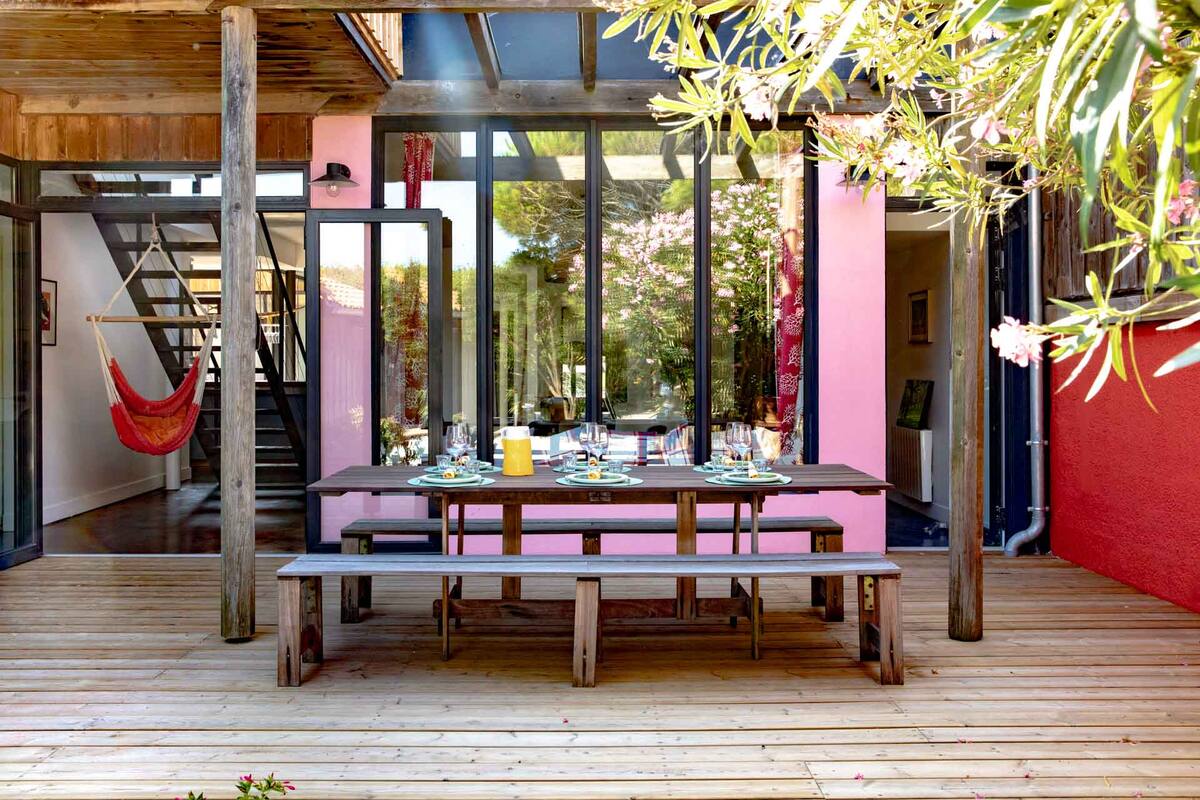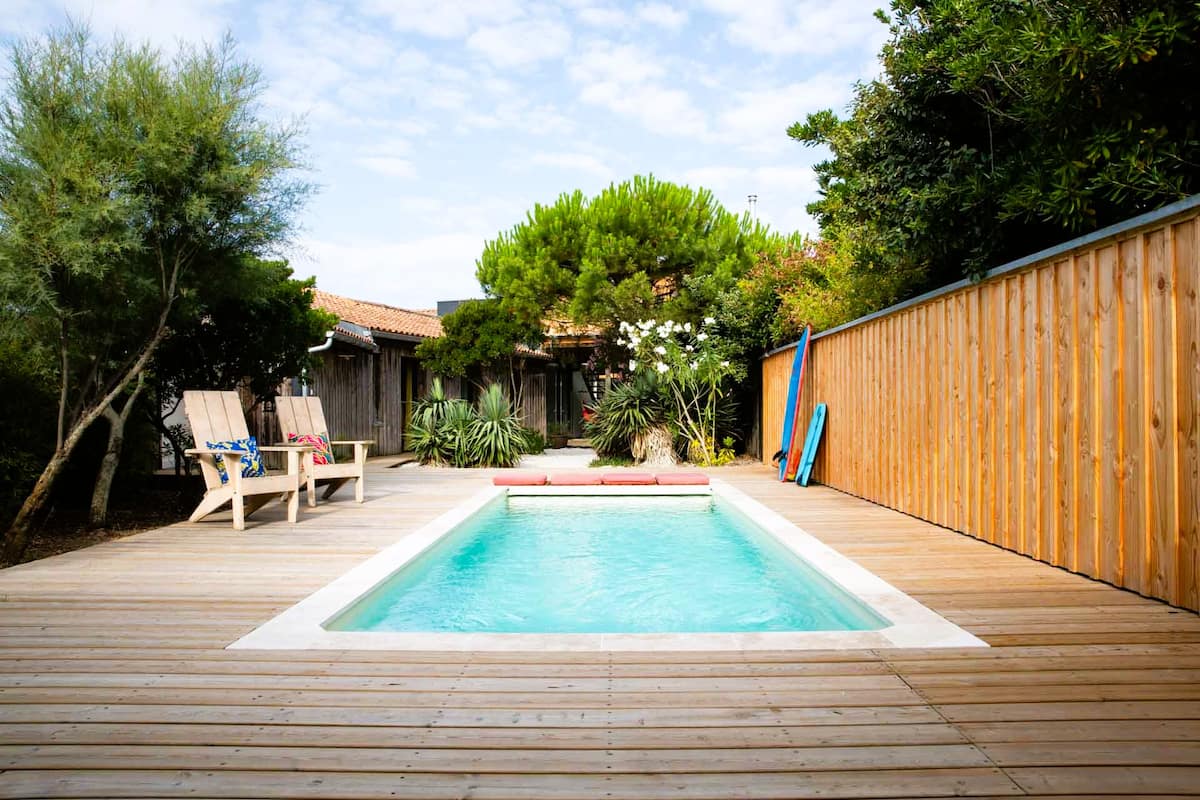 Cette villa lumineuse mélange un style contemporain et une architecture de bois. Il offre le confort, le calme et l'intimité dans un environnement central de Lacanau-Océan. Son emplacement permet un accès immédiat aux spots de surfs, aux boutiques et restaurants de Lacanau-Océan, mais aussi aux golfs, au lac et à la forêt ainsi qu’à ses nombreuses pistes cyclables et équestres… Depuis la villa vous pourrez oublier la voiture et ne plus profiter que des cheminements piétons et de vos vélos.