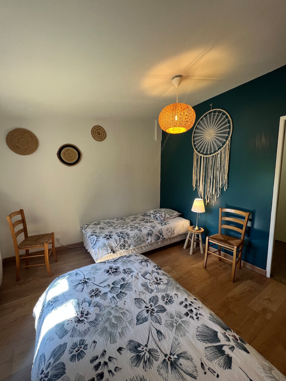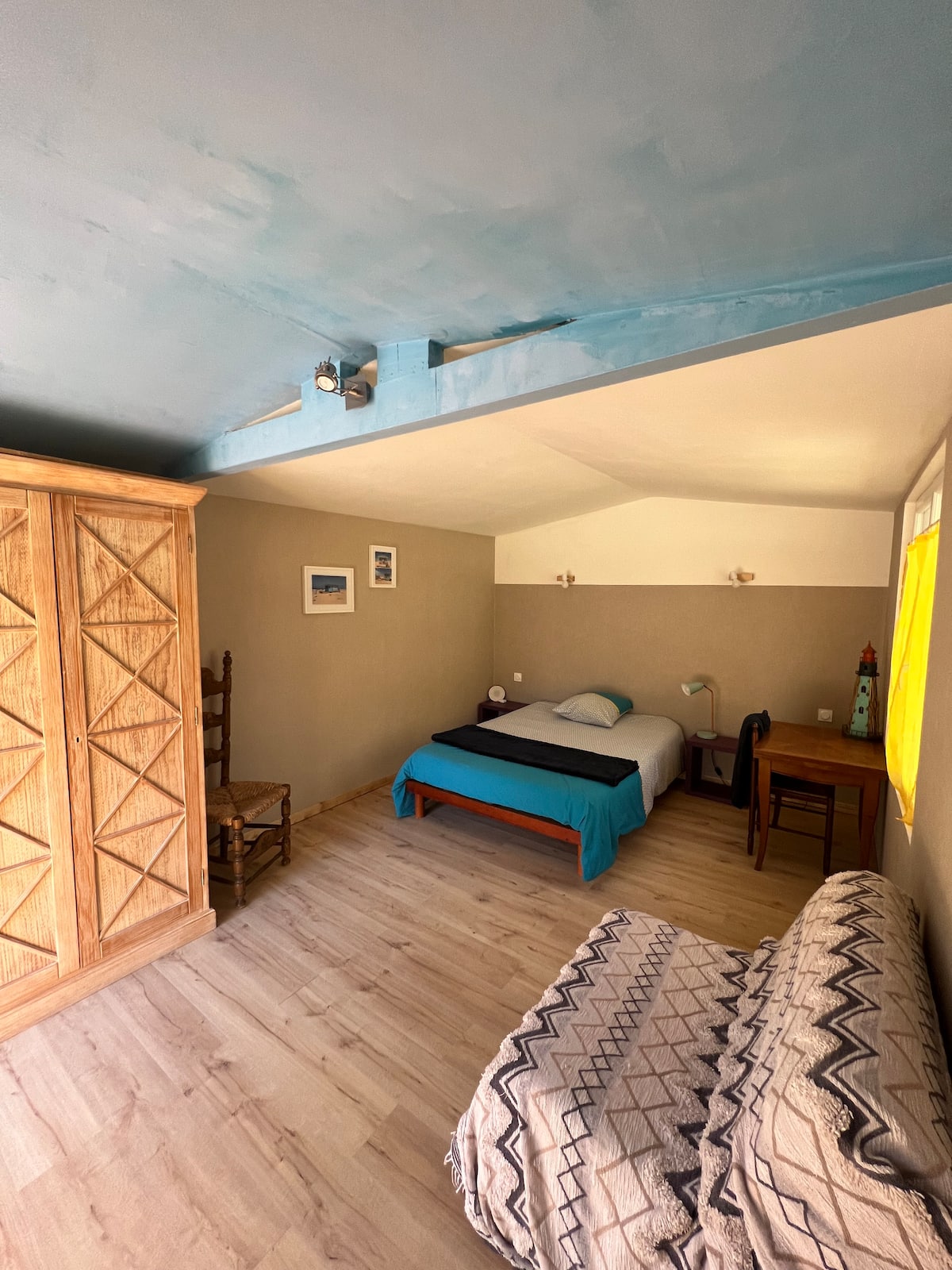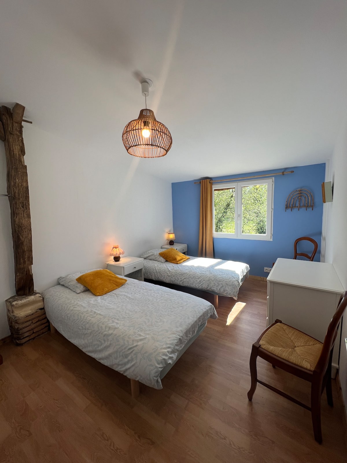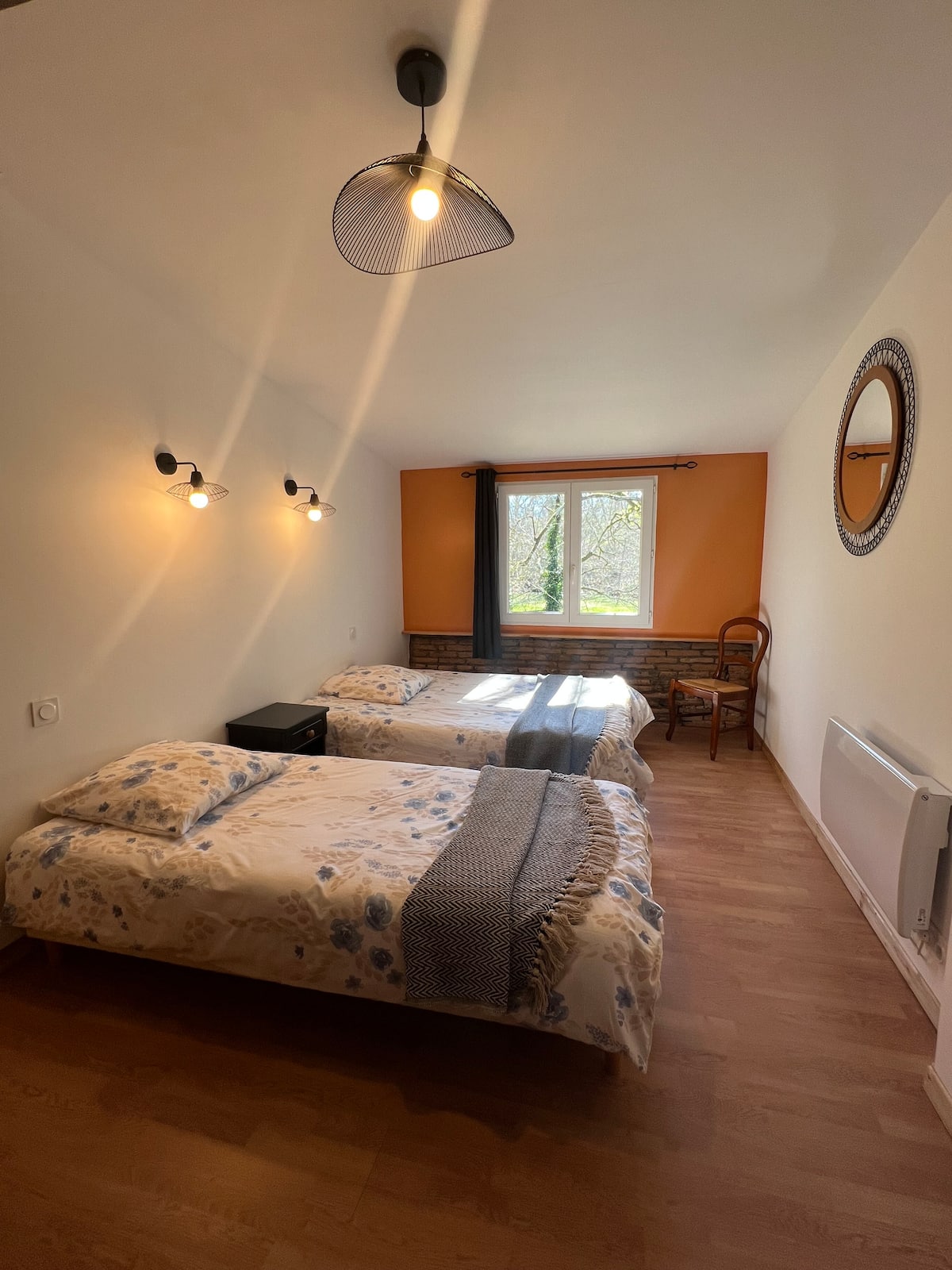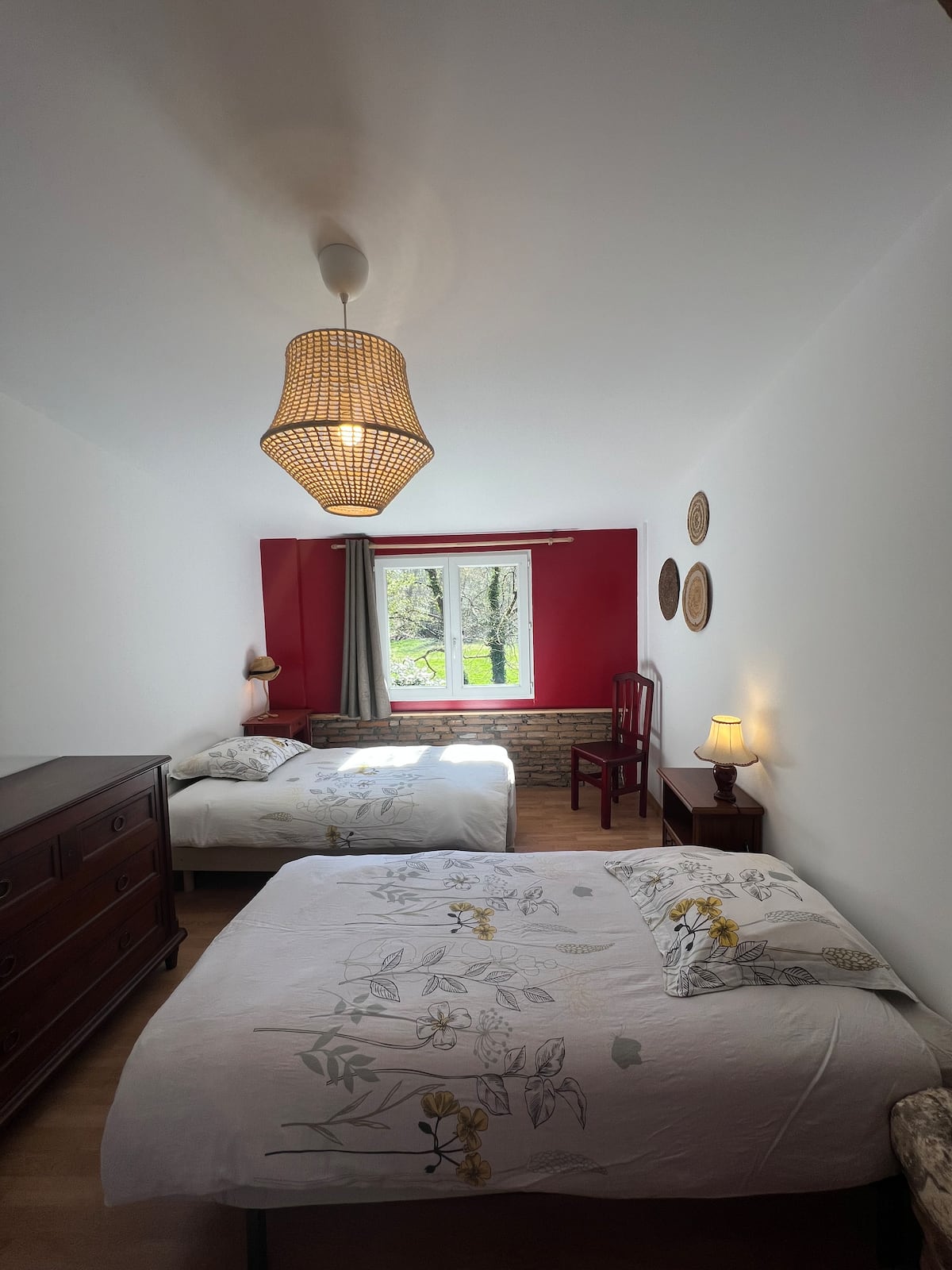 Vous découvrirez 5 chambres (4 chambres avec 2 lits simple et 1 chambre avec 1 lit double et 2 lits simple) ainsi qu'une dépendance avec un lit double et 1 canapé lit pour 1 personne.