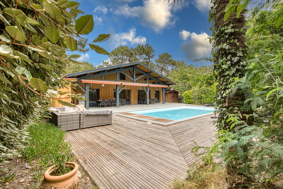Au milieu d'un écrin de verdure, au calme toute l'année, dans une impasse, 200m² 6 chambres, 2 dortoirs, 5 salles d'eau, 22 couchages, exposée plein sud, louée avec draps, serviettes, linge de maison.