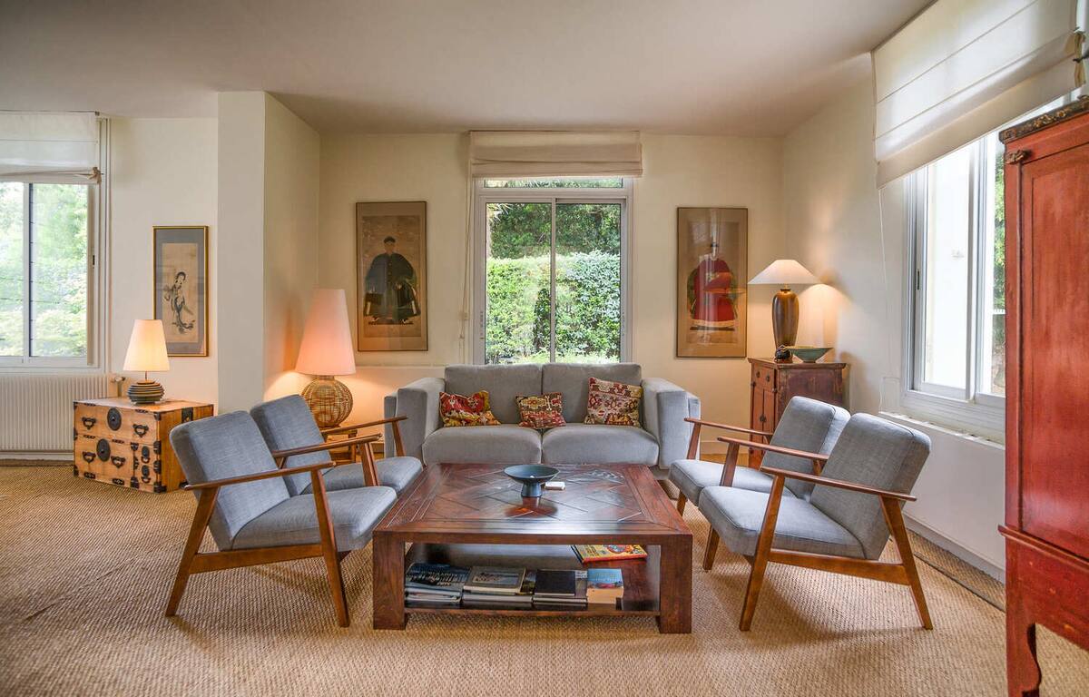 Composée de 6 chambres et pouvant accueillir 12 personnes, la villa se compose au rez-de-chaussée d’un grand salon avec télé, d’une immense salle à manger et cuisine plein sud le tout avec une élégante décoration. Vous pourrez également accéder à la terrasse surplombant le jardin et sa piscine.