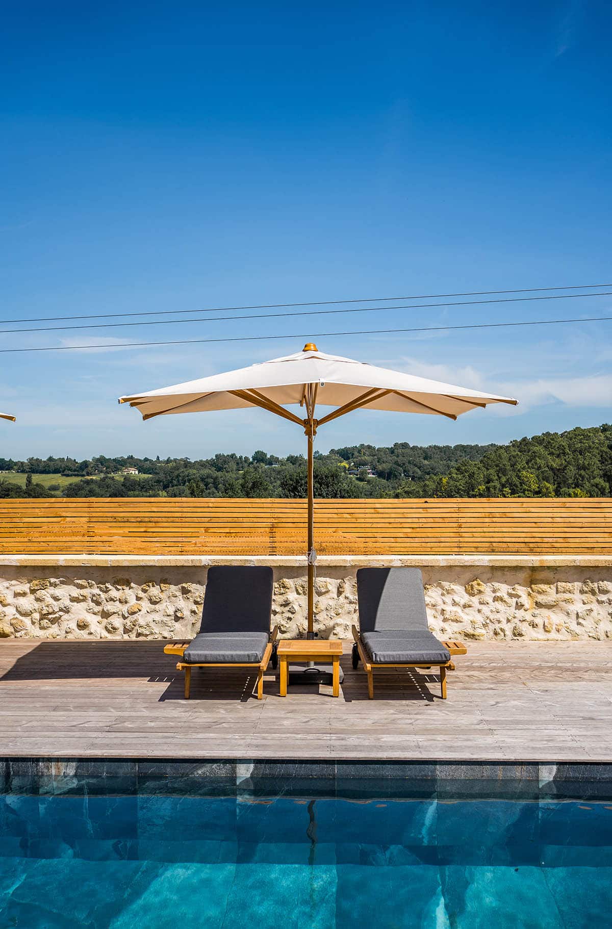 Son vaste salon de jardin, sa piscine chauffée en pierres de Bali, son magnifique parc verdoyant, son terrain de pétanque vous offriront des moments de détente et vous permettront de vous ressourcer. Les chefs-cuisiniers pourront s’essayer à la plancha pour des séances grillades inoubliables.