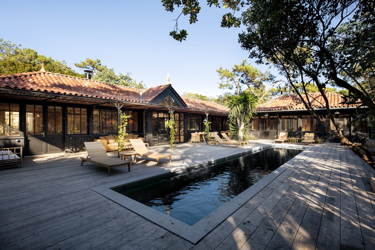 Au cœur du Cap Ferret, venez découvrir cette villa authentique type cabane dans un écrin de verdure . A l'extérieur vous profiterez d'une magnifique terrasse avec plancha, piscine et dépendance.