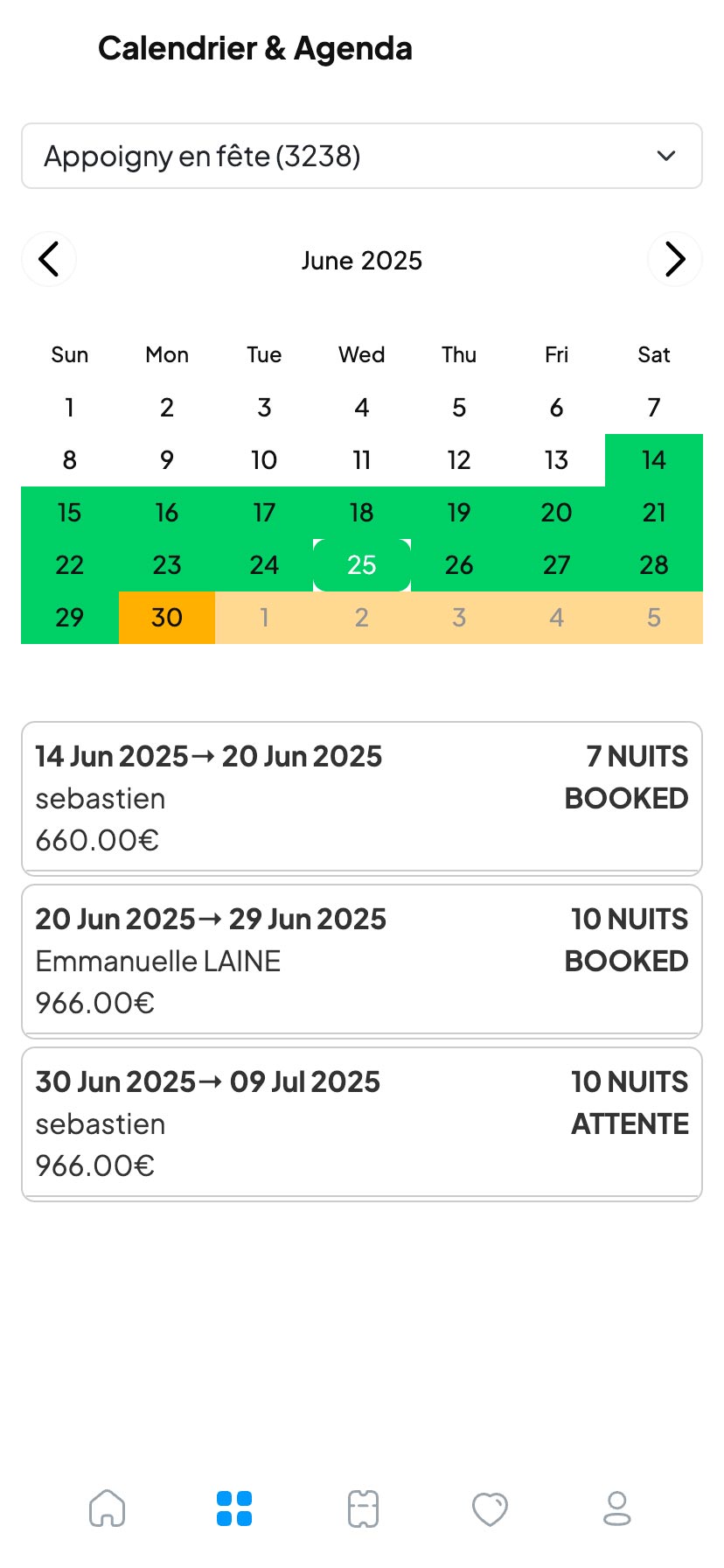Un seul calendrier pour suivre toutes vos réservations, qu'elles viennent de votre site, d’Airbnb, de Booking ou d'ailleurs. Synchronisation automatique pour éviter les doublons.